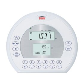 Dimensioni (w)215 x (L)80mm, 1° Display peso a 5 Cifre LCD 20mm, 2° Display Altezza/BMI multiriga a 3 cifre LCD 12mm, Tastiera 18 tasti